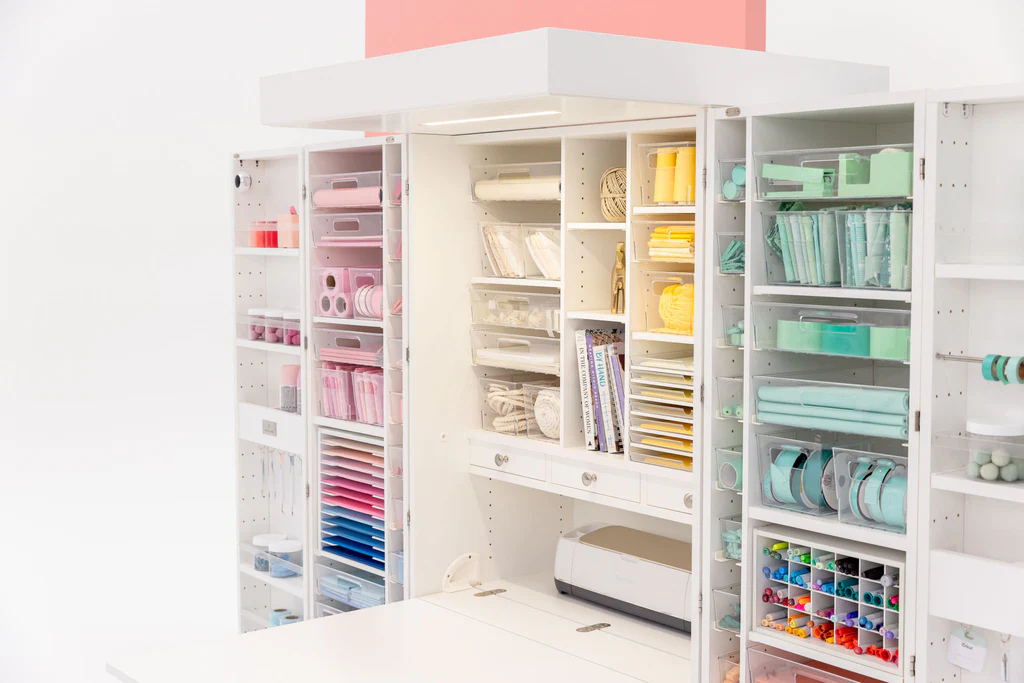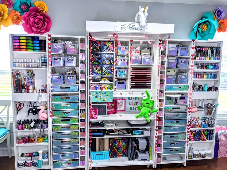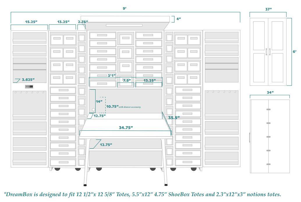 The DreamBox also comes with 16 clear lidded jars (16 oz.), 12 acrylic shelf guards, 12 hooks, and 4 metal rods that are perfect for storing ribbon, washi tape, bakers twine, and more!