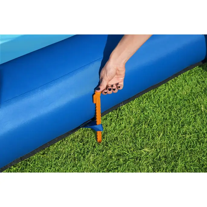 - Contents: 1 water park, 1 blower, 1 water spraying hose, 1 repair kit, 1 storage bag, 15 stakes, 1 basketball