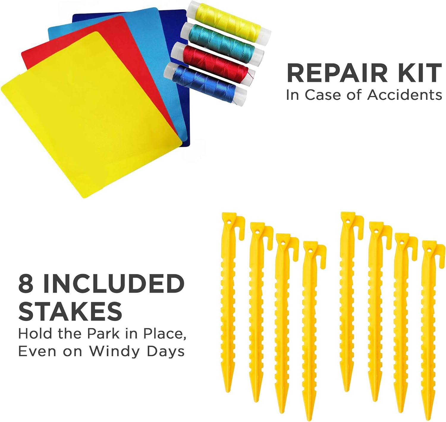 Air pump, Carrying case, Repair kit, Air pump stakes (4) & Water park stakes (8)
