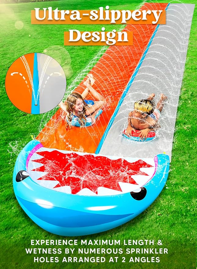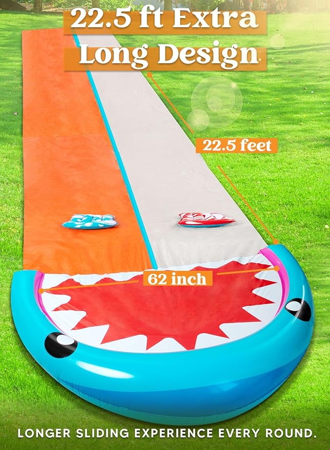 Endless Fun: Our two - lane, extra long slide gives kids an extra fun sliding experience, where they get more time spent sliding and having an awesome time with family and friends. They can have races to see who’s faster, great fun for family parent-child summer outdoor backyard and lawn activities.